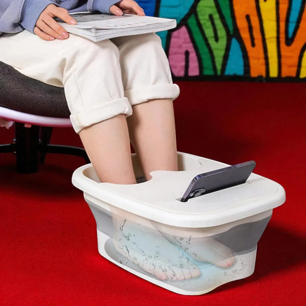 CO Balde Dobrável com suporte para celular transforma o tradicional escalda pés em uma experiência prática e agradável. Além de aliviar o cansaço e a tensão dos pés, seu design inovador permite a você desfrutar de entretenimento ou relaxamento digital simultaneamente. Ideal para uso em casa, em viagens ou mesmo no trabalho.